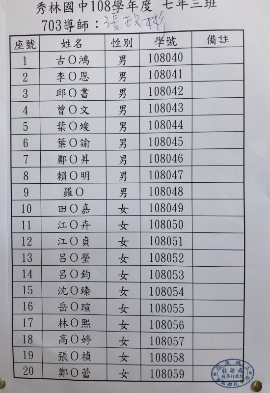 秀林國民中學教學正常化學校公告資料及自我檢核表