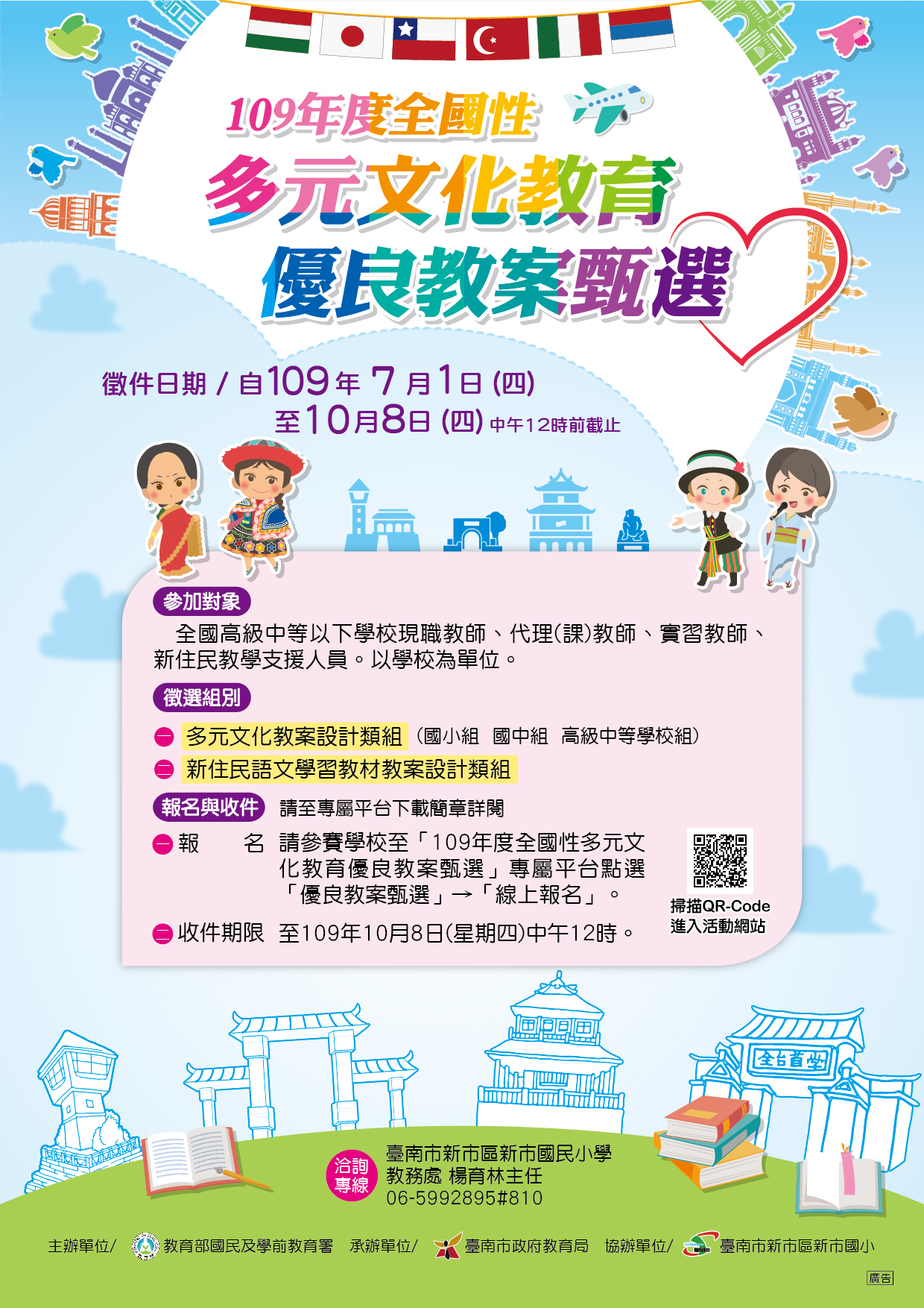 為提升教育人員課程與教材研發風氣,精進教師多元文化教學能力,鼓勵教育人員研發多元文化教育融入式教材,特辦理旨揭計畫。 |
