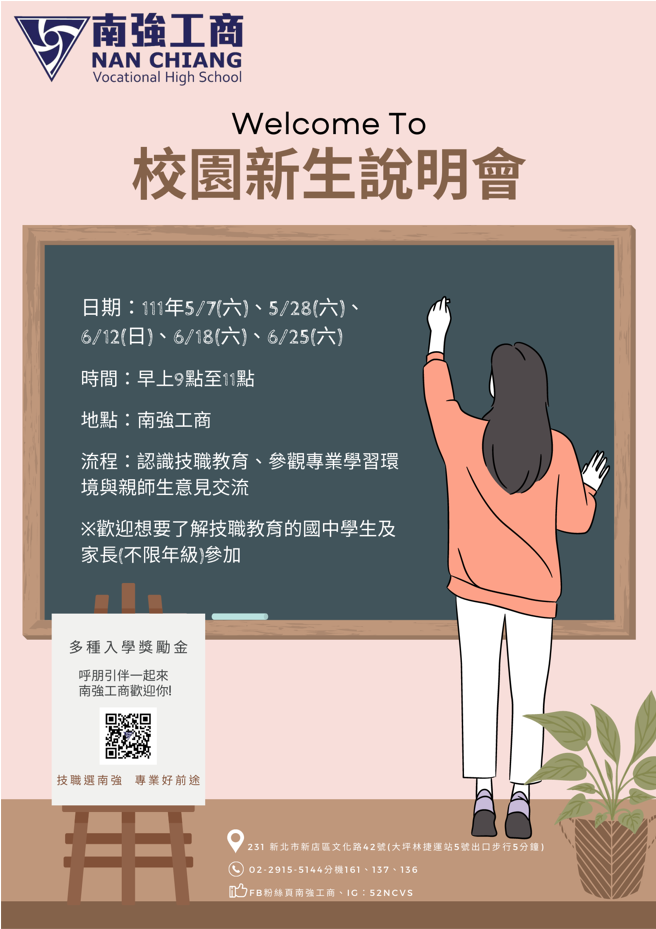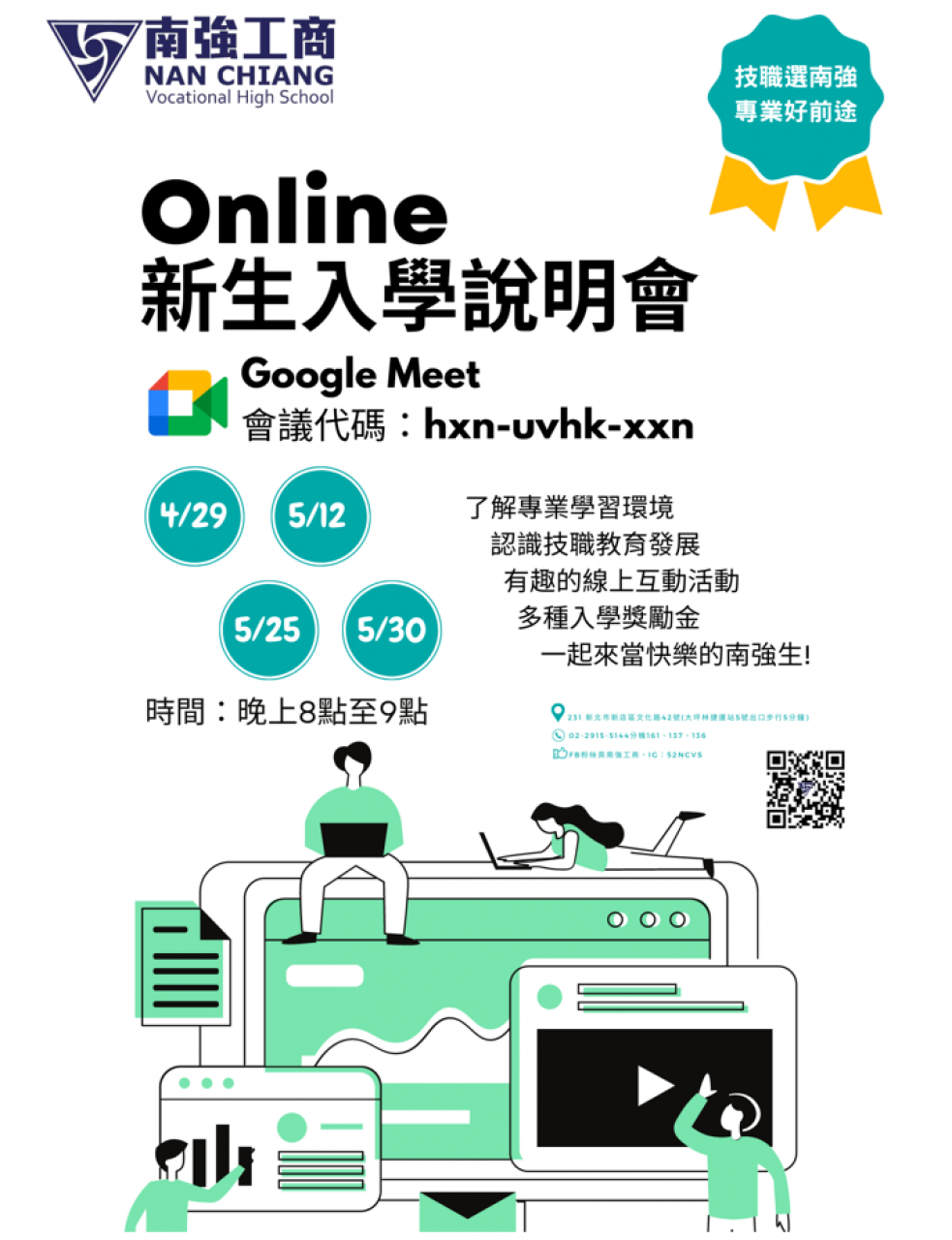 南強工商新生入學線上說明會,歡迎同學、家長踴躍參加