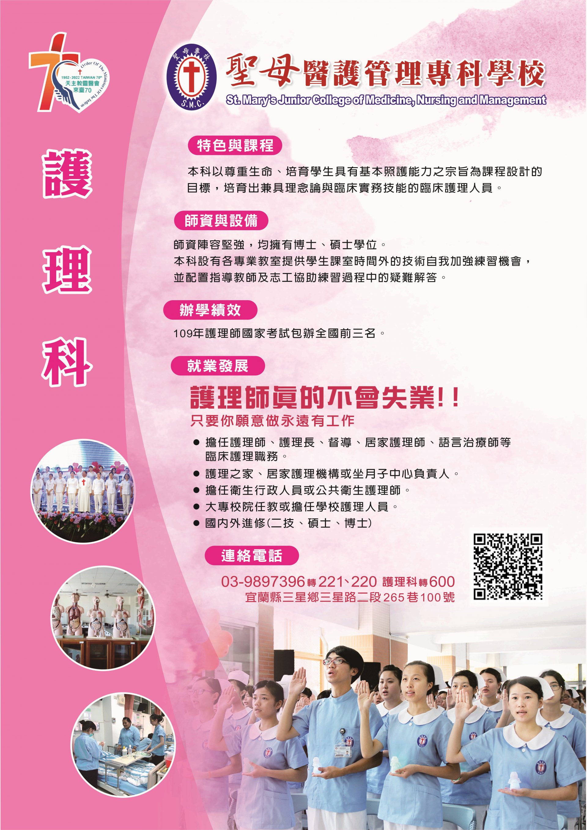 一、目的:了解護理科特色、專業課程規劃、未來就業、升學管道及意見交流。 二、活動日期與時間:111年5月23日~111年6月10日每週三、五晚上19點~20點。 三、活動方式:以Google Meet會議辦理,會議代碼:ons-wsax-vxg。