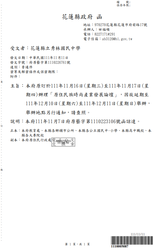 花蓮縣政府辦理「原住民族時尚產業發展論壇」因故延期至111年12月10日(星期六)至111年12月11日(星期日)舉辦