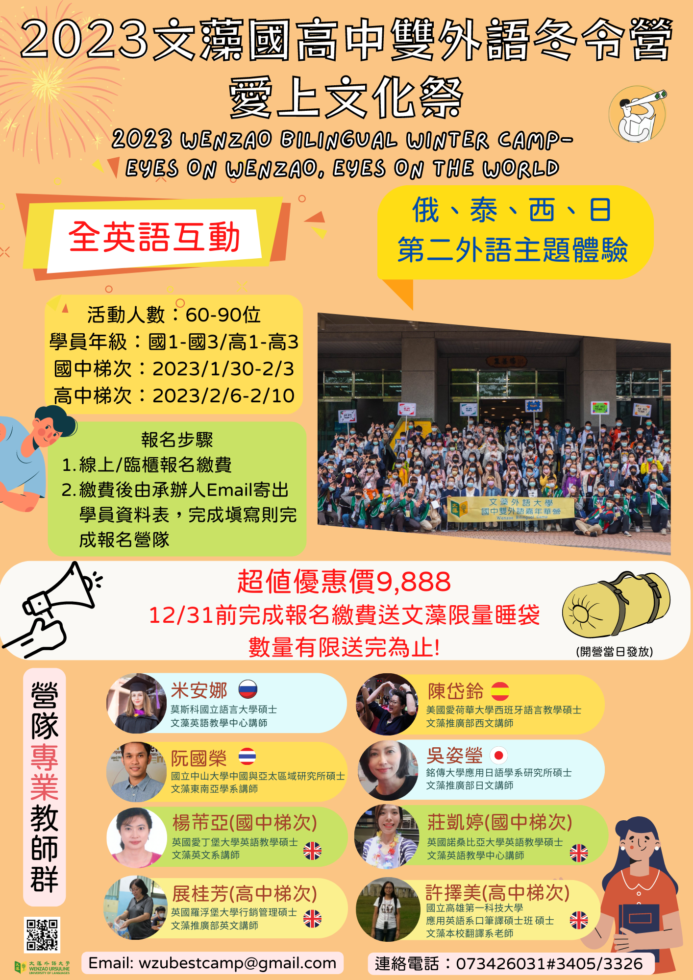 文藻外語大學辦理2023國中雙外語冬令營簡章。