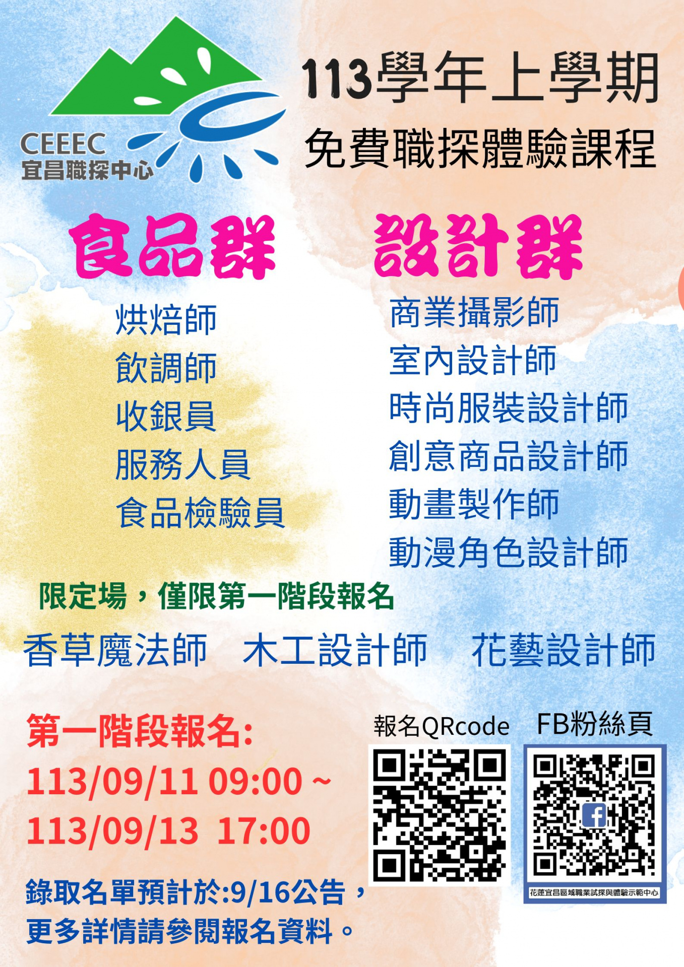 宜昌職業試探與體驗示範中心113學年度第1學期課程相關資料,請參閱