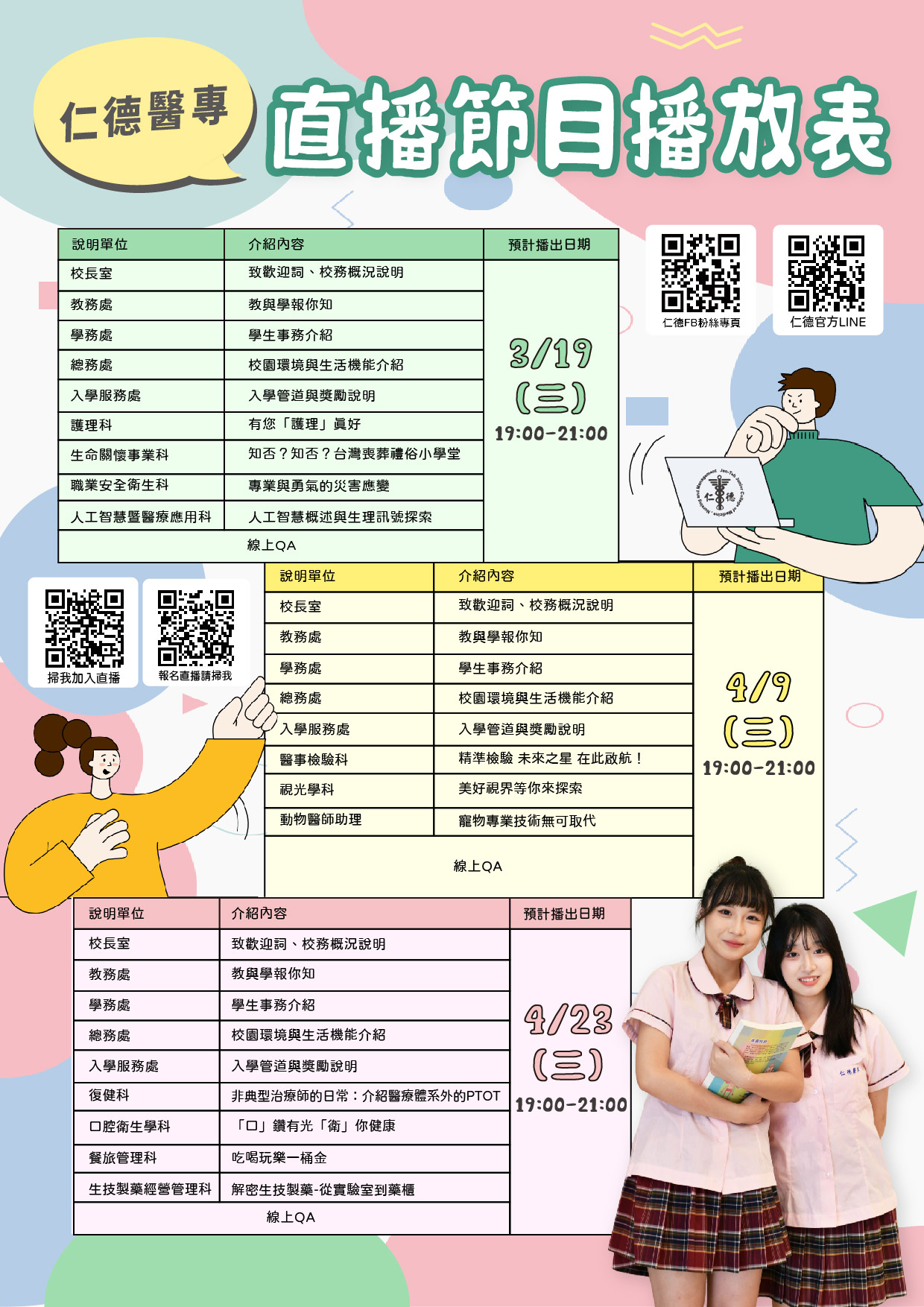 二、參加任何一場線上說明會的學生將核發2小時研習時數,未來報名仁德醫護管理專科學校完全免試入學或聯合免試入學管道可取得[其他]積分項目1分。