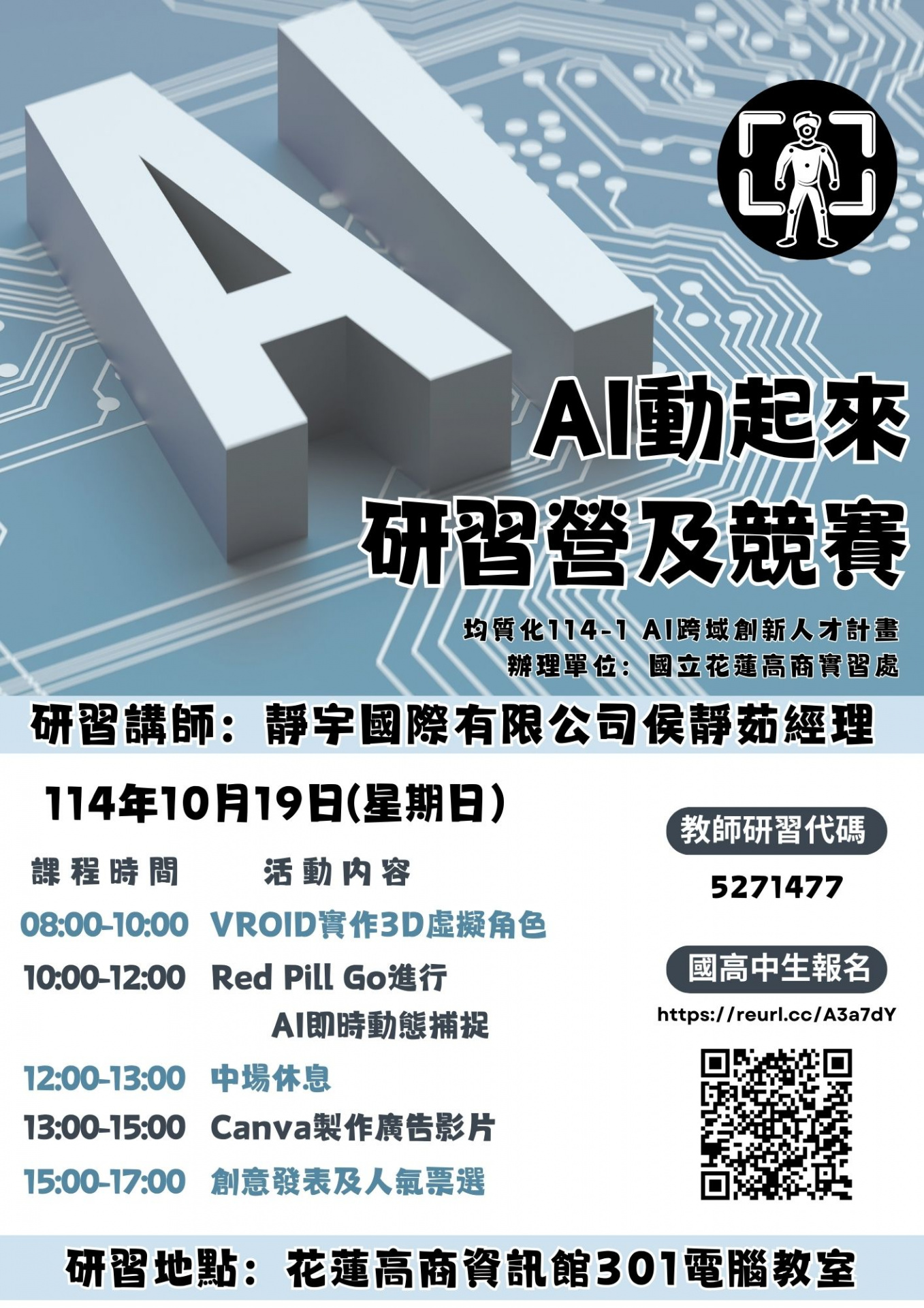 花蓮高商均質化「AI動起來研習營及競賽」活動,歡迎師生報名參加
