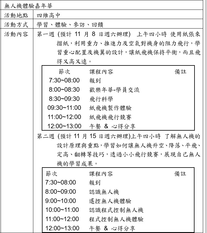四維高中辧理「無人機體驗嘉年華」(九年級生優先),詳情請參閱附件