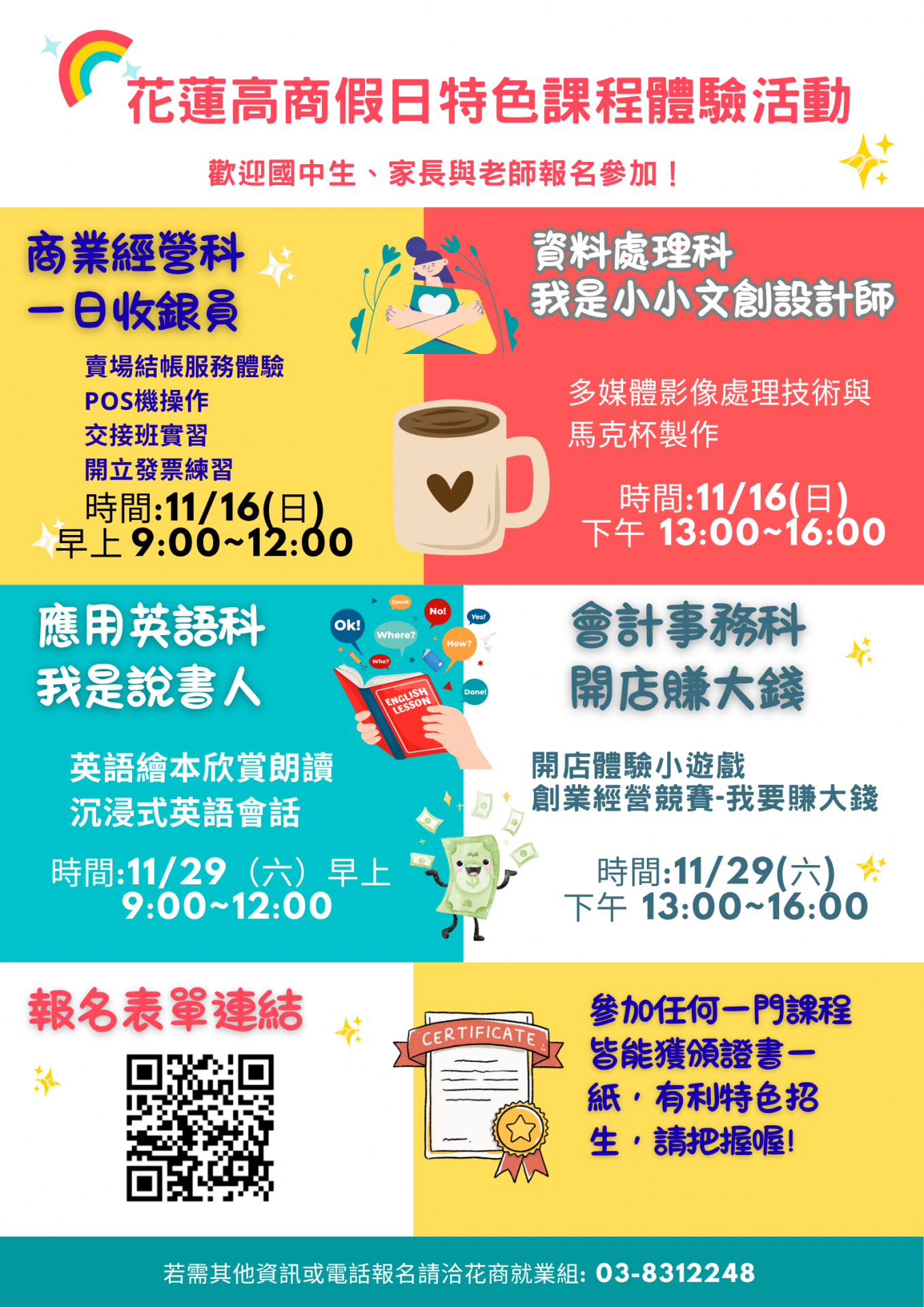 花蓮高商特色課程體驗活動(每一場次限25人),歡迎同學報名參加