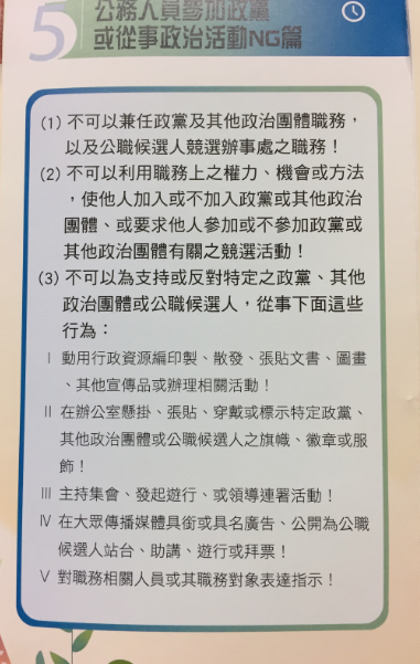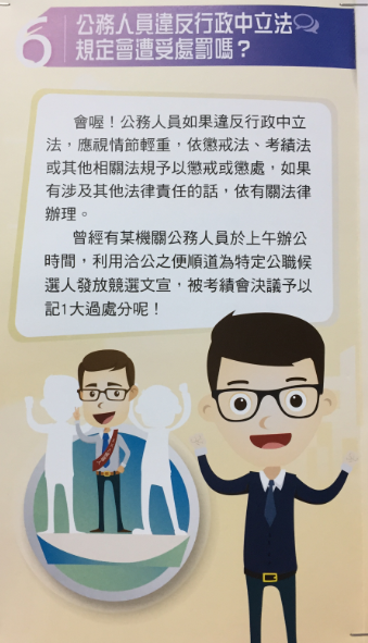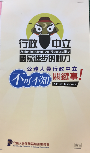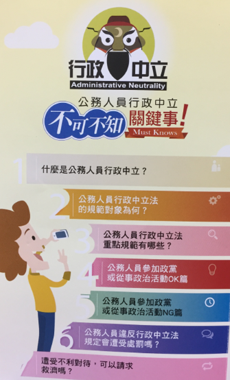 公務人員行政中立不可不知關鍵事宣導摺頁,請查照。